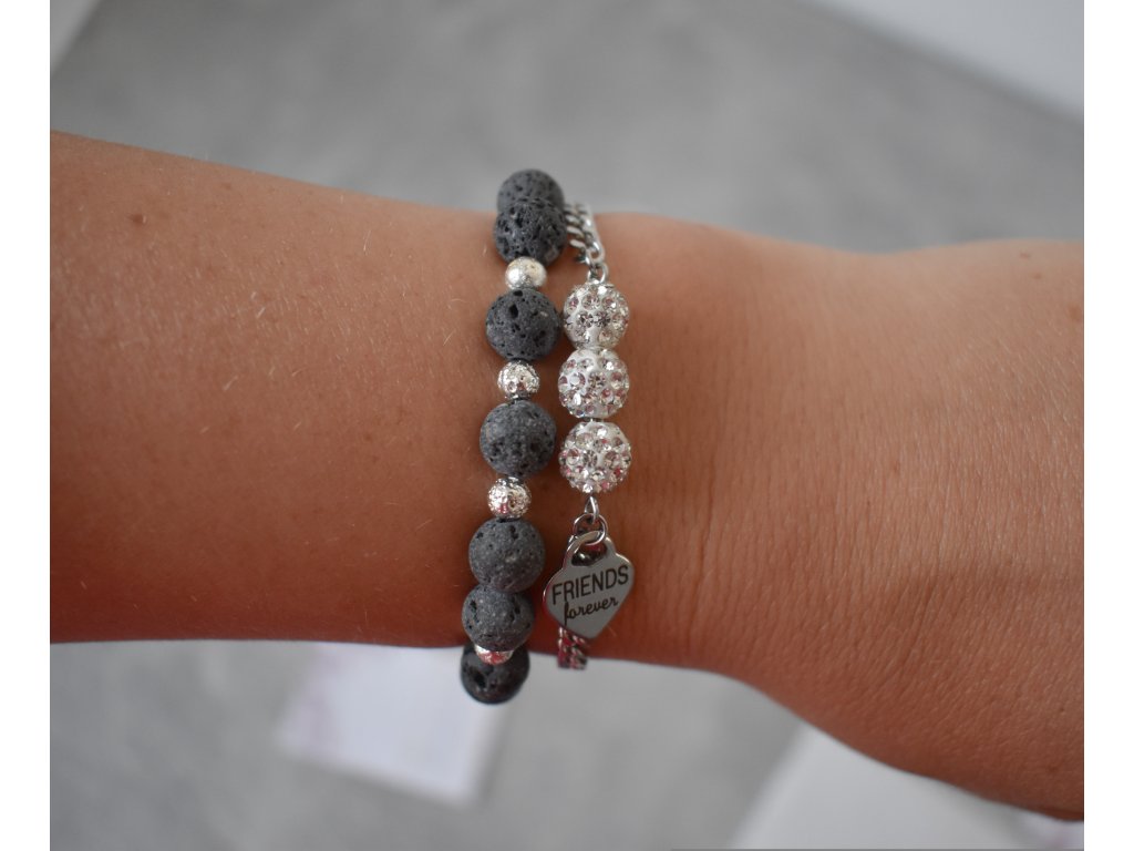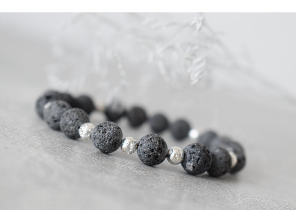 Náramek z přírodní lávy - neupravená, bez vosku. Menší korálky jsou také lávové - pokovené.