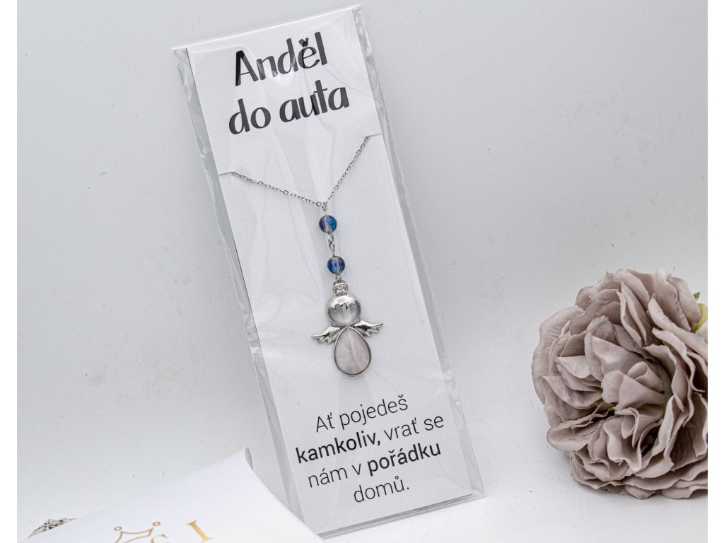 Ochrana na cesty v podobě anděla s minerálními korálky.