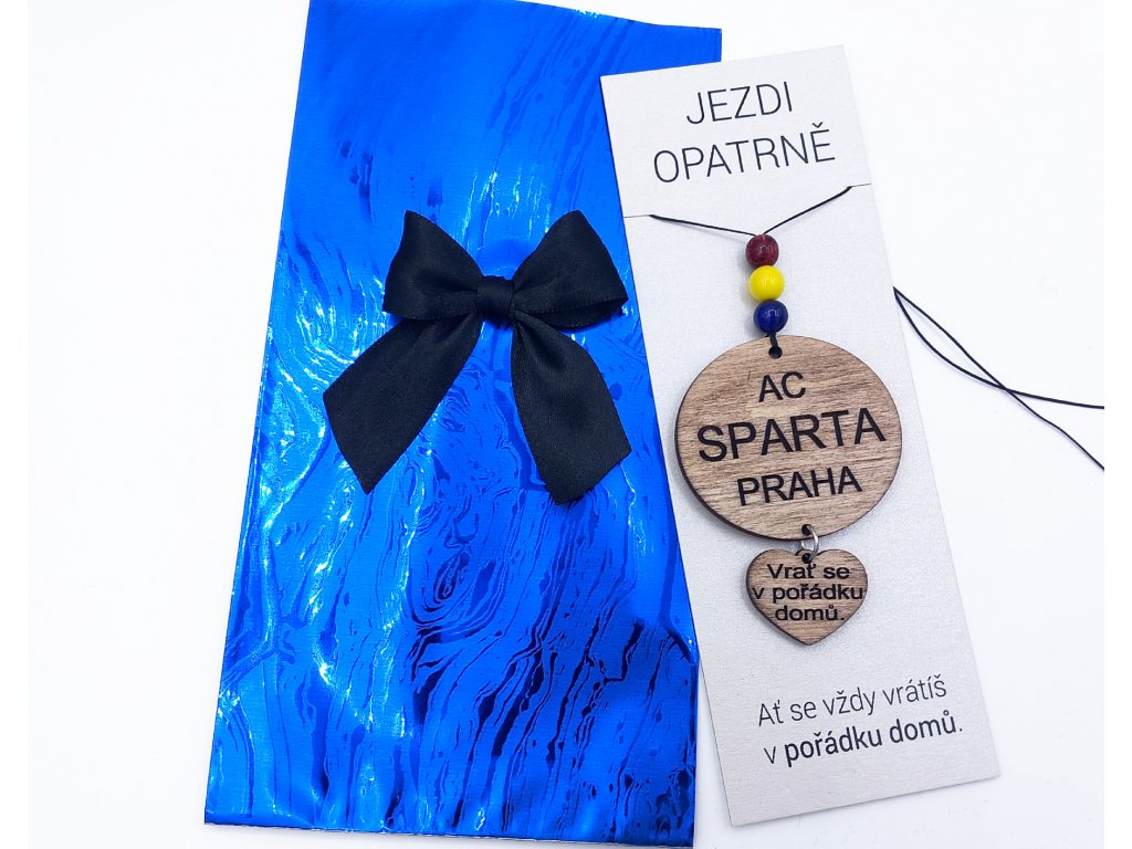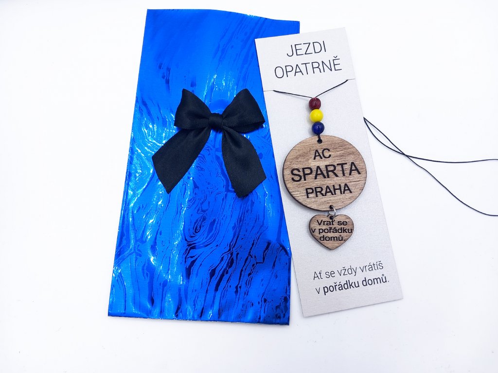 Přívěsek do auta ve sparťanských barvách a s nápisem AC Sparta Praha. Přívěsek si lze nakombinovat - lze přidat i malé srdíčko s různými texty. Nebo vám můžeme vygravírovat váš vlastní text.