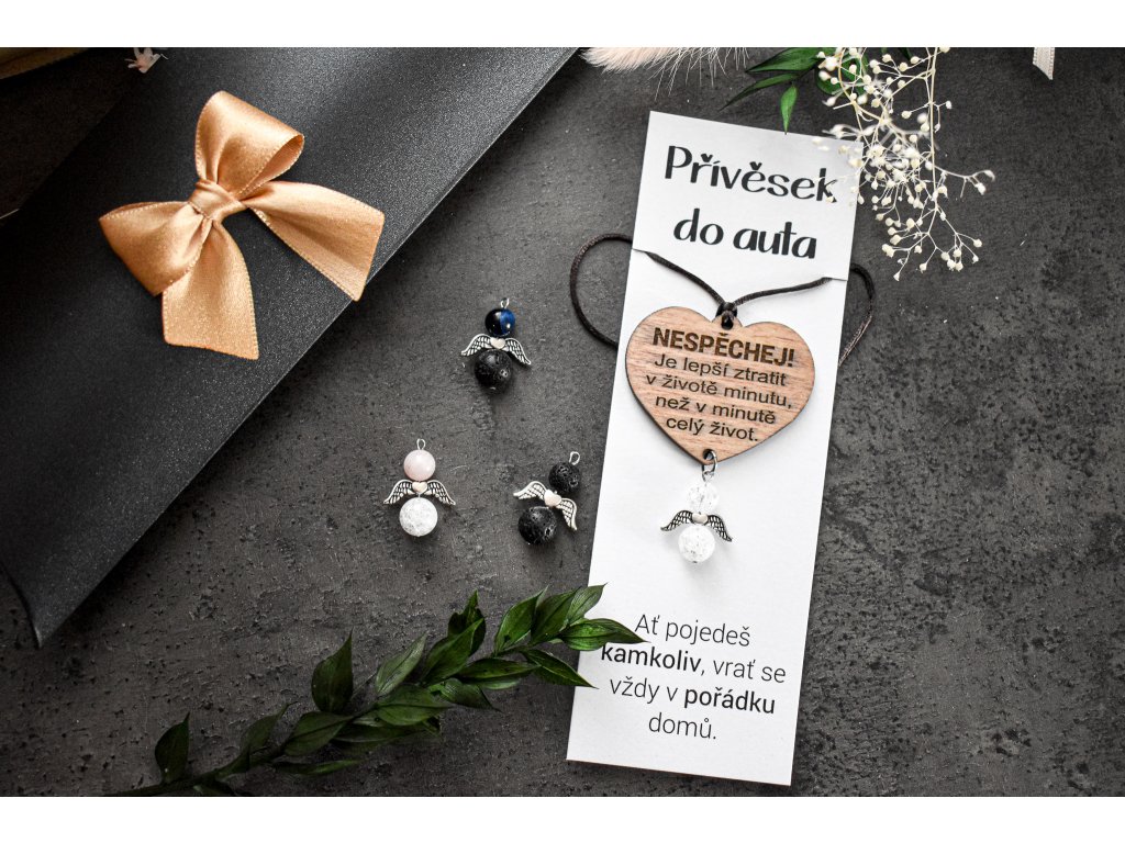 - srdce Nespěchej (54 x 44 mm) + anděl z minerálů dle výběru