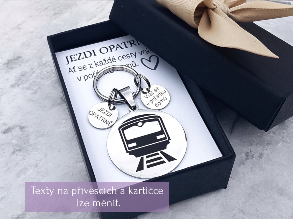 Perfektní dárek pro milovníky železnic. Klíčenka s vlakem je nejen stylová, ale i personalizovatelná díky dvěma přívěskům, na které lze vygravírovat texty z naší kolekce nebo váš vlastní originální nápad.