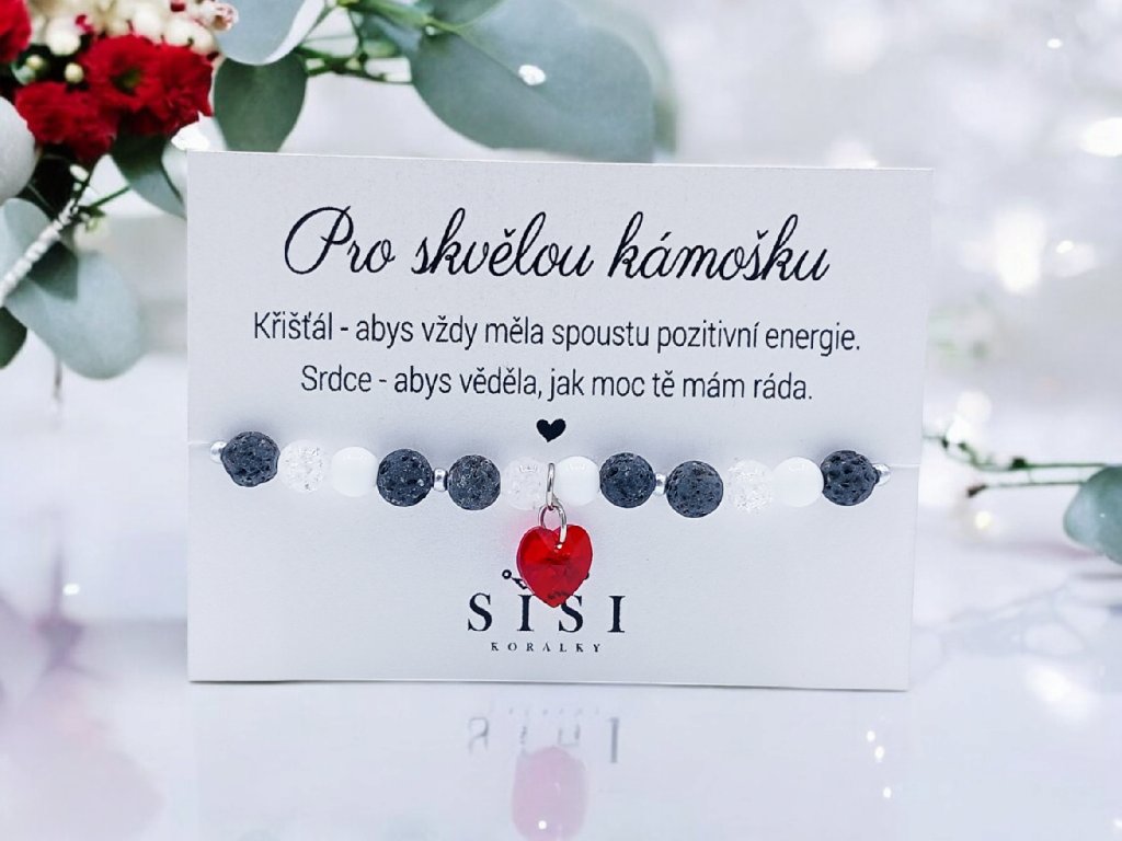 Náramek Bílo-šedý a červené srdce Swarovski pro kamarádku