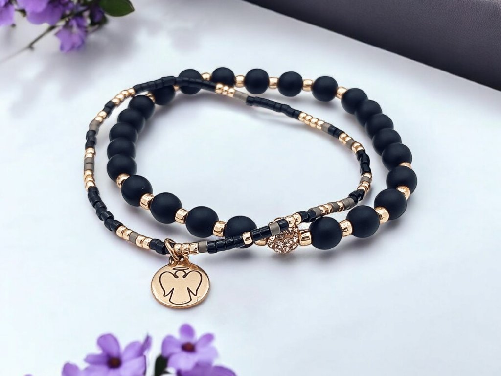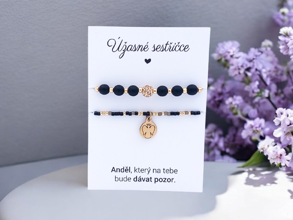 SET náramků Černá & rose gold – Andělská ochrana pro sestru