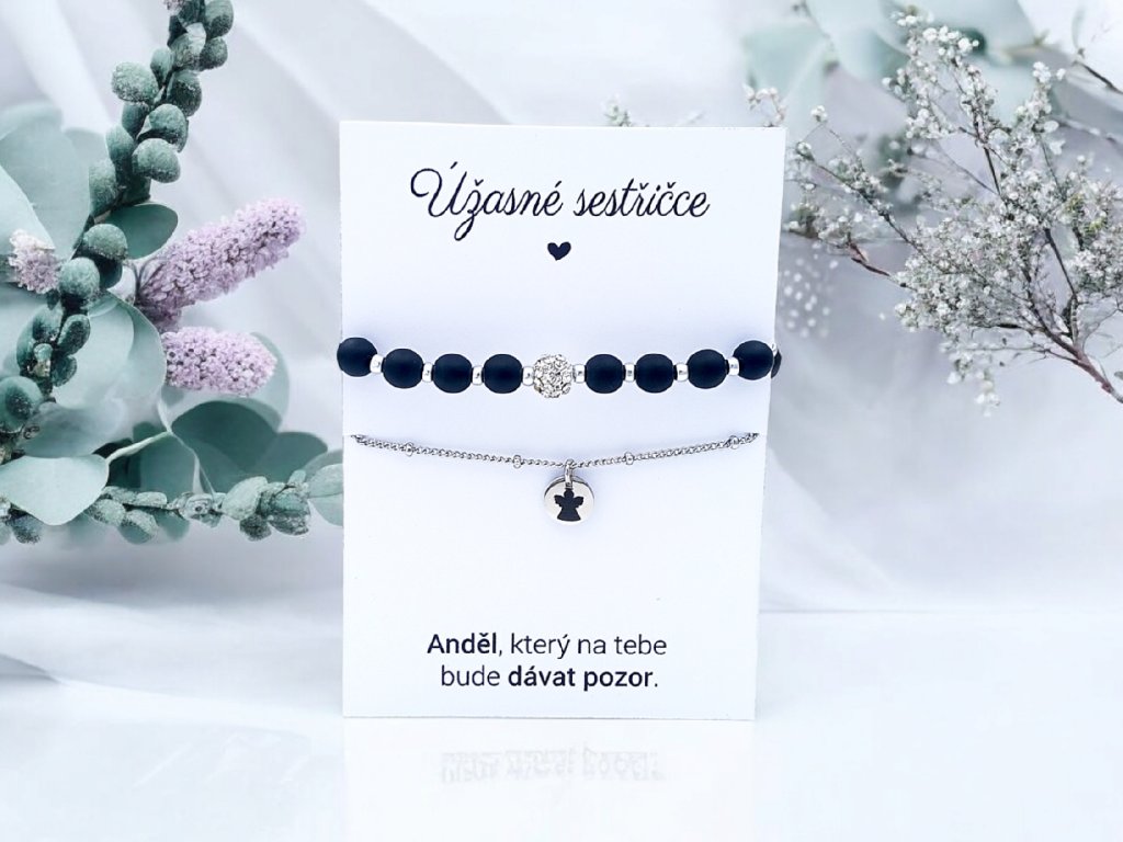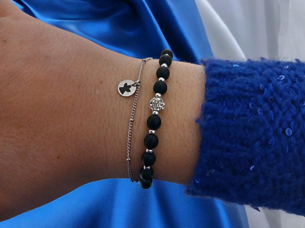 - Druhý náramek z černých matných korálků s třpytivým detailem