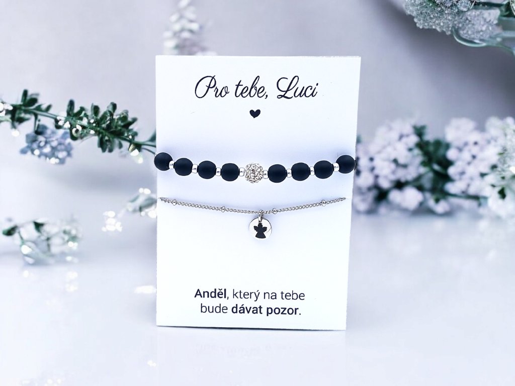 - Druhý náramek z černých matných korálků s třpytivým detailem