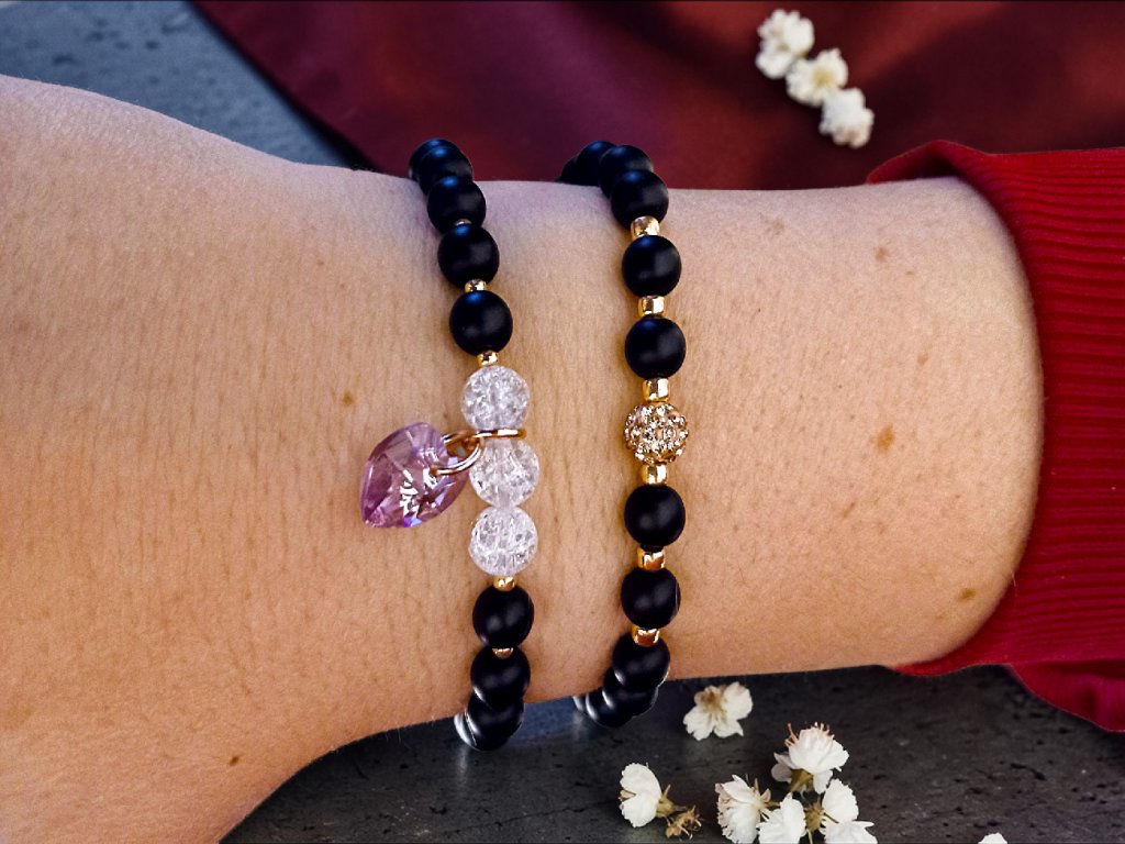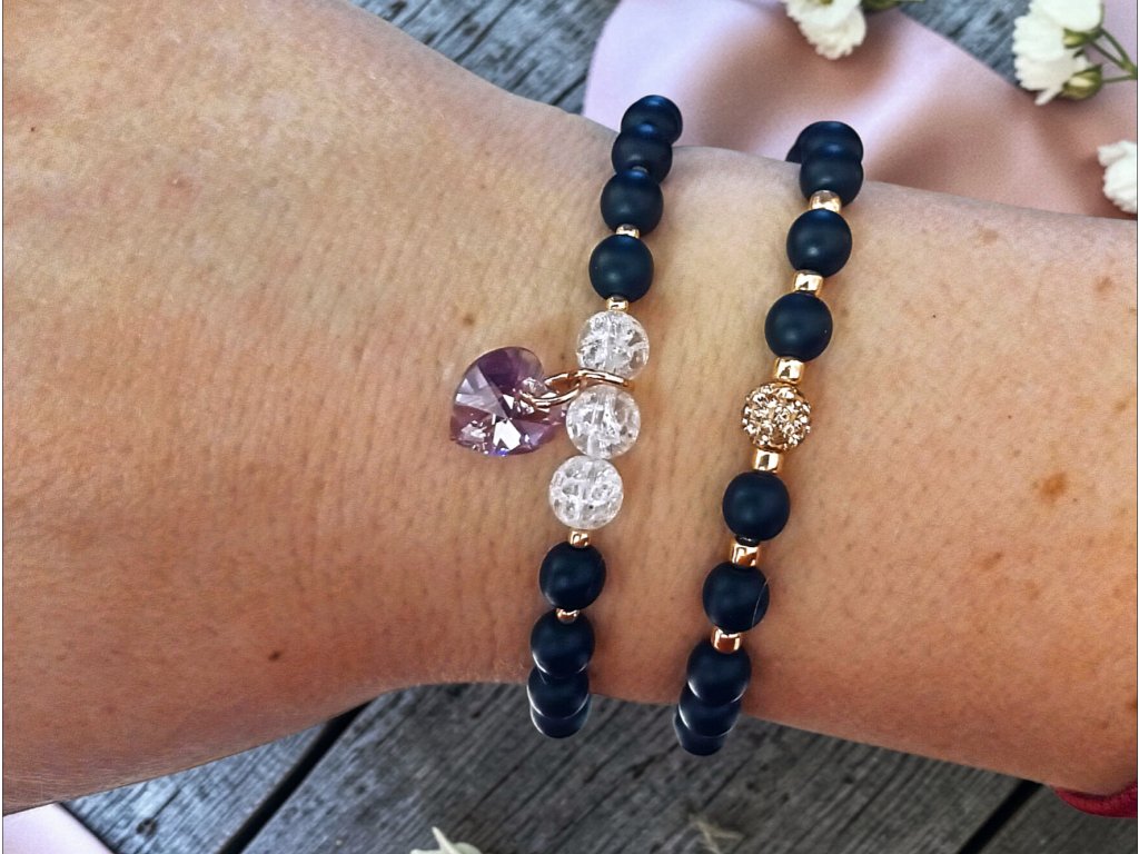 - Materiál: matné černé skleněné korálky, přírodní praskaný křišťál