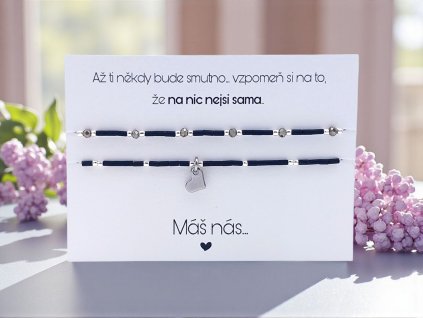 Elegantní náramky se srdíčkem a vzkazem, který zahřeje. Ideální dárek pro chvíle, kdy chcete říct: „Stojíme při tobě.“ Souprava obsahuje - 2 náramky na kvalitní pružence,...
