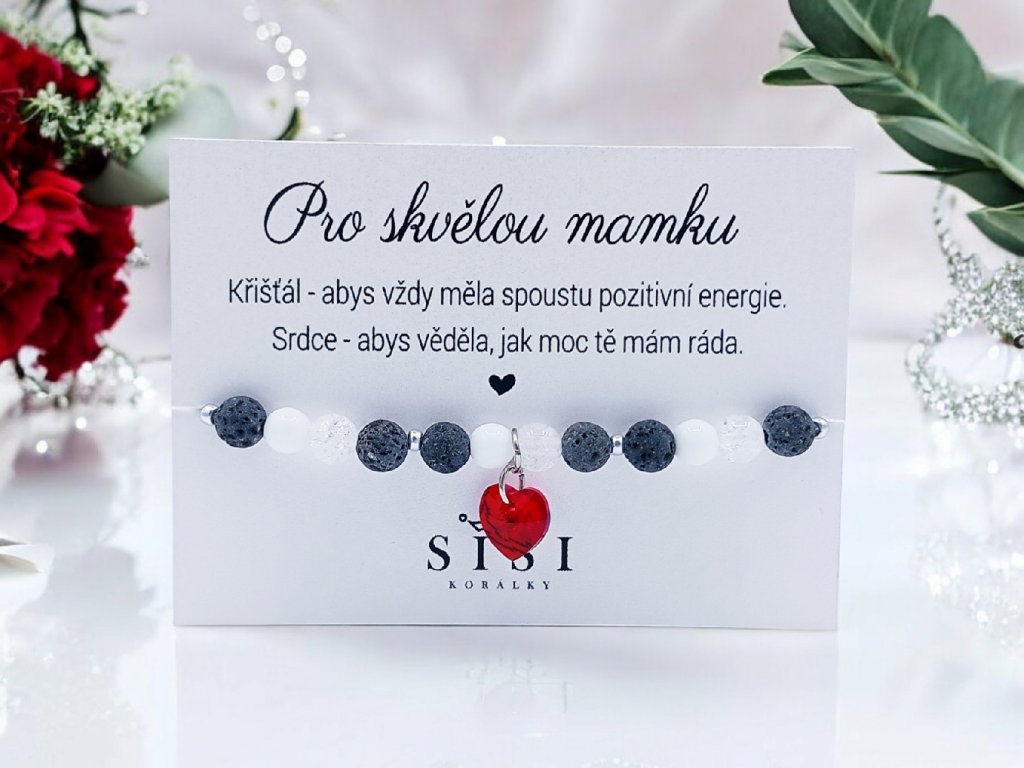 Náramek Bílo-šedý a červené srdce Swarovski pro maminku
