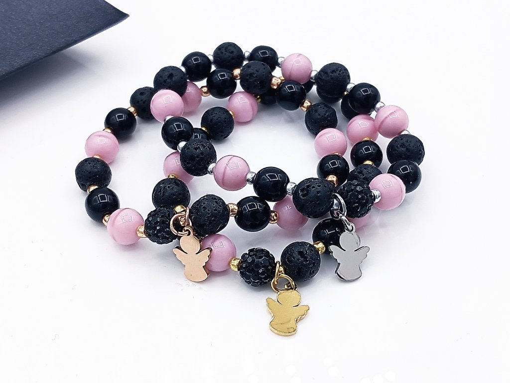 Černo-růžový náramek s andělem, který je dokonalým darem pro vaše sestry. Každý náramek je doplněn dárkovou kartičkou.
