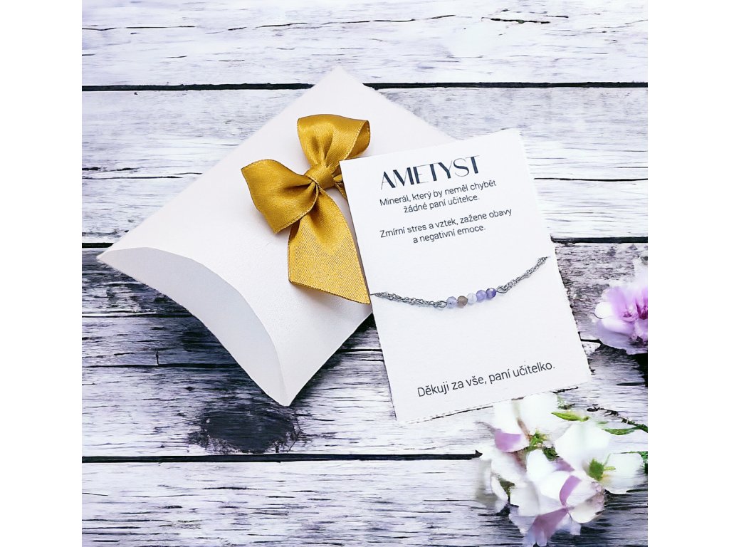 Aby byl dárek pro paní učitelku dokonalý, zabalili jsme náramek do dárkové krabičky.