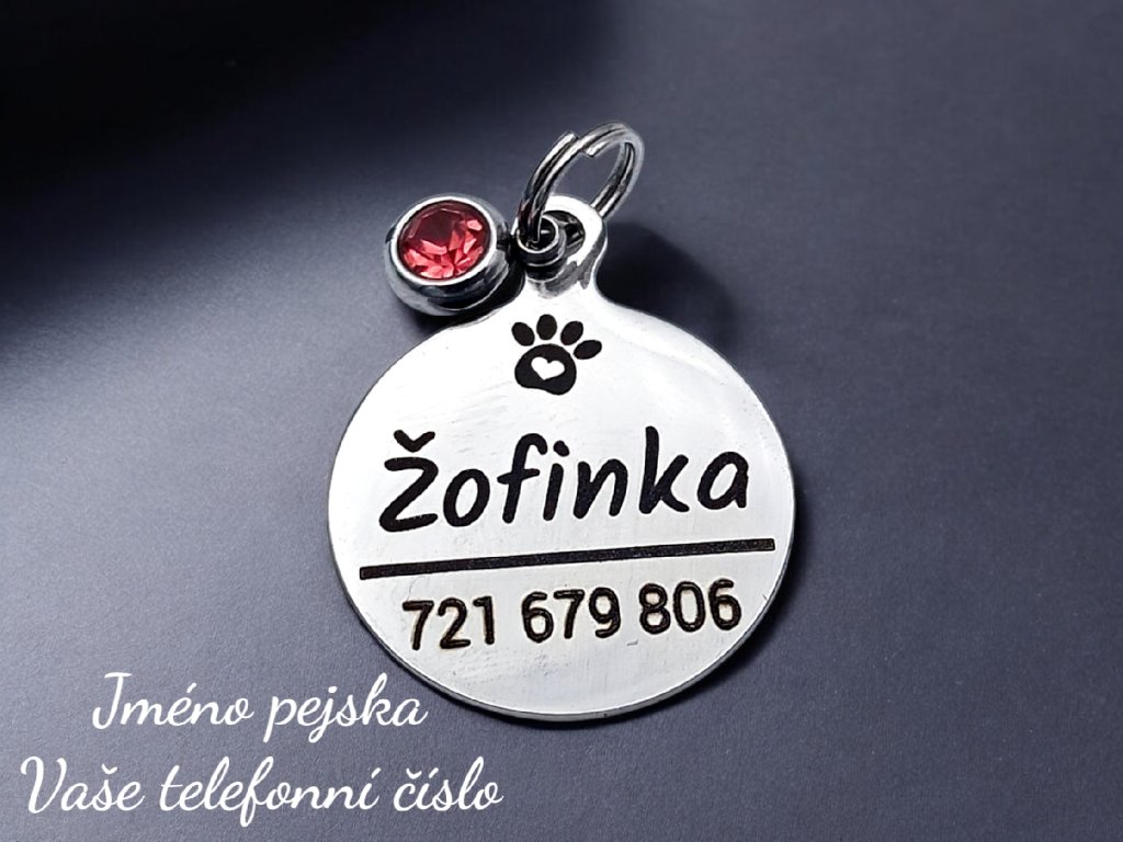 Vygravírujeme vám na ní jméno pejska a vaše telefonní číslo. To zajistí, že vás vždy rychle kontaktují, pokud se pejsek zatoulá.